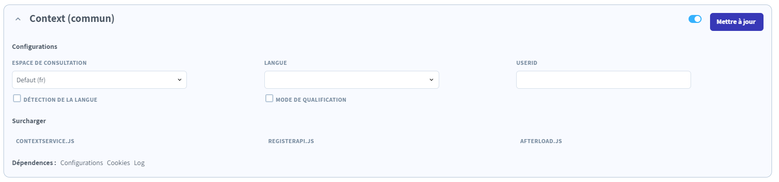 Important : la capture de ces variables requiert qu'un registerContext soit configuré au niveau de la chatbox pour récupérer l'information.