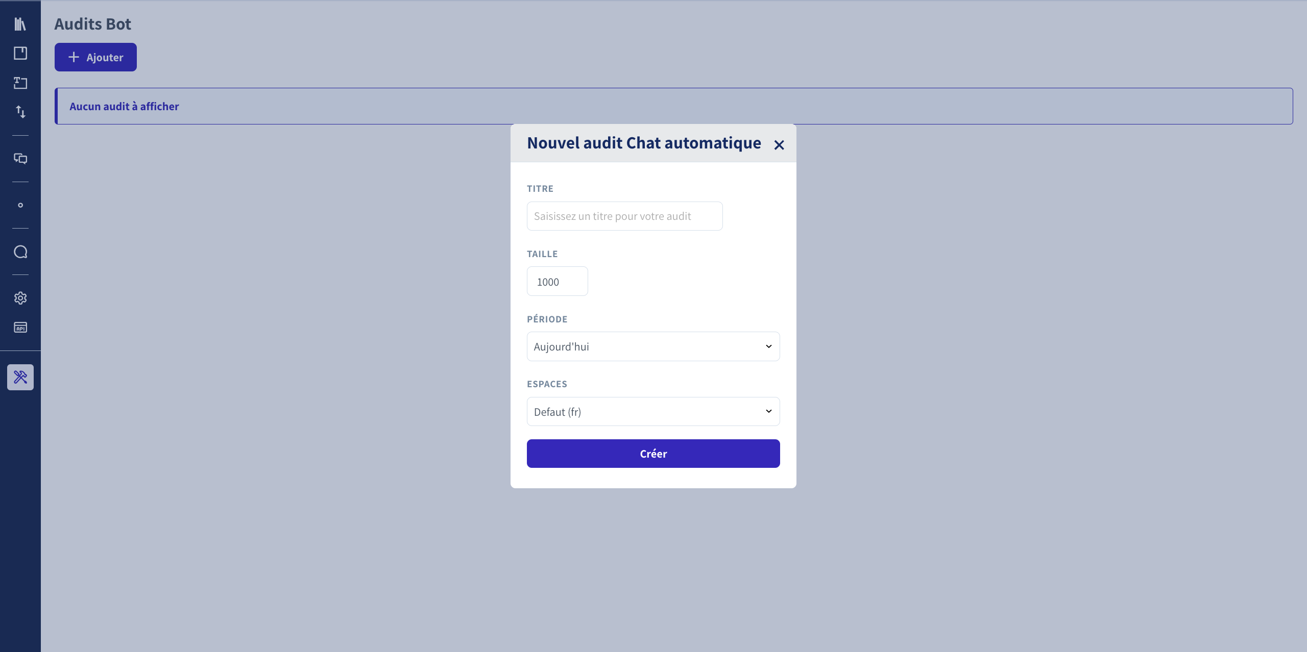 2. Cliquer sur le bouton "Ajouter" pour créer un nouvel audit