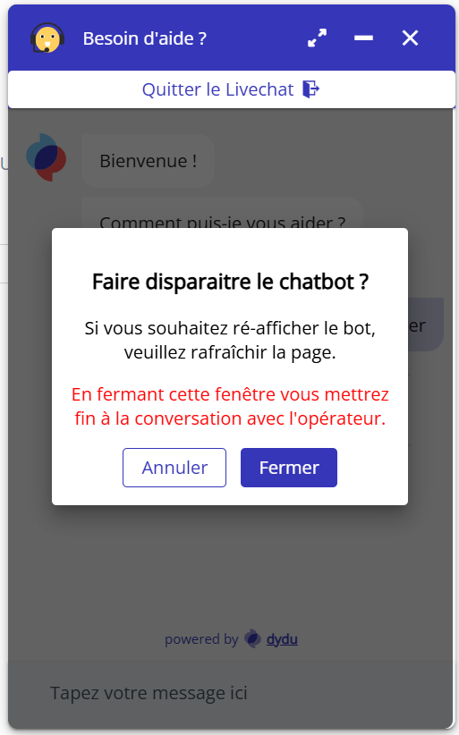 Quitter le Livechat depuis la chatbox