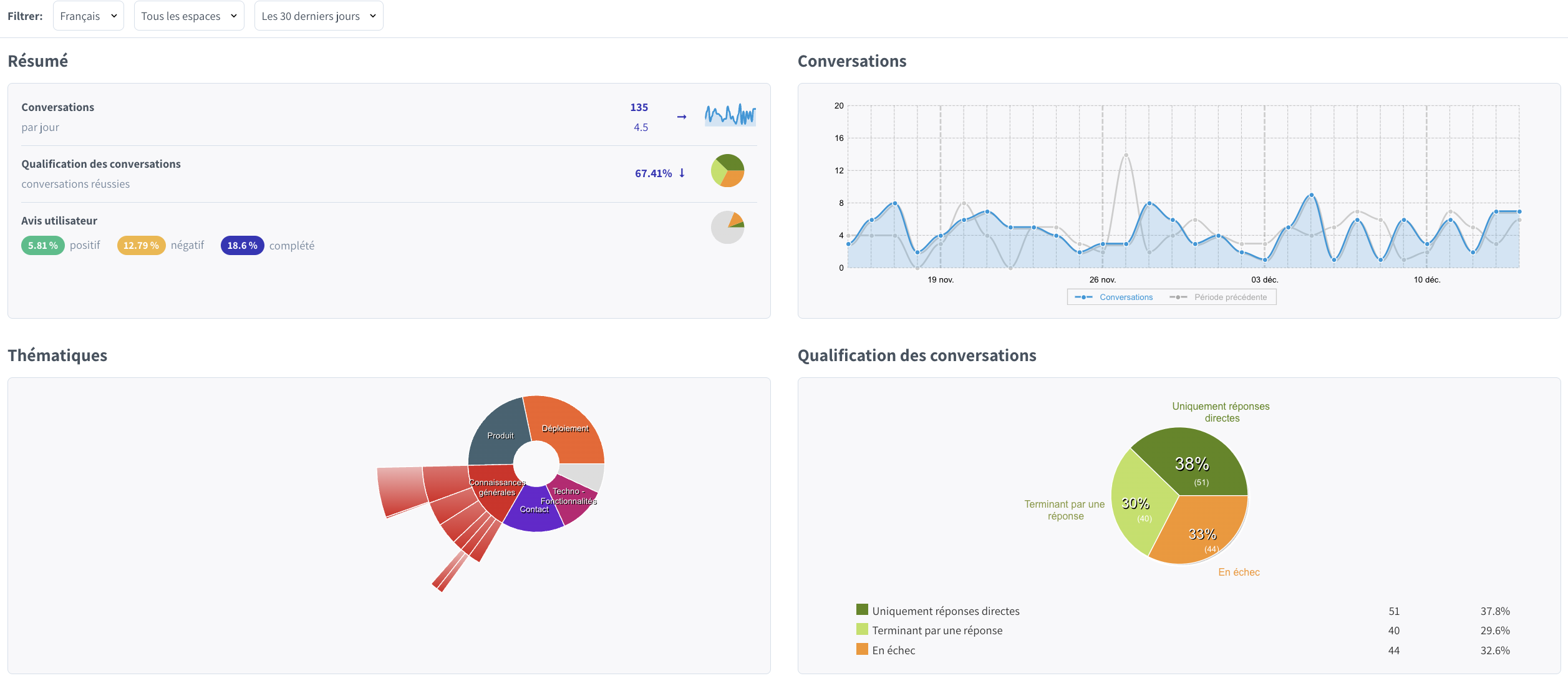 * la qualification des conversations menées avec le bot : combien ont réussi, combien ont échoués